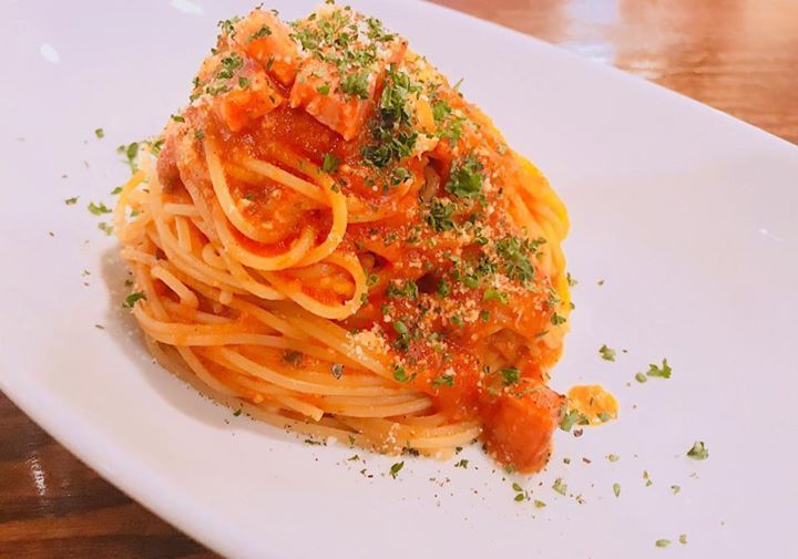 【ベーコンのトマトソースパスタ】